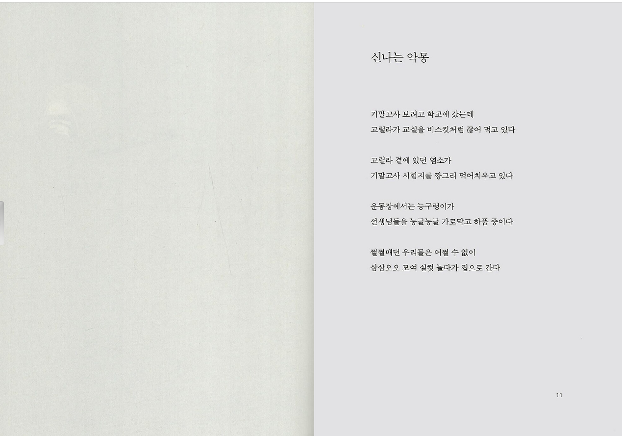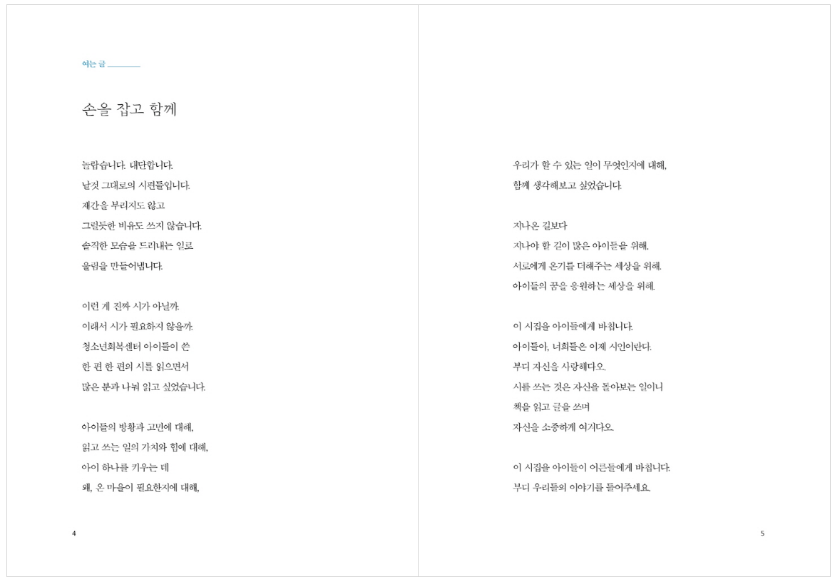 박준 시인의 시 「낙서」 속 한 구절 “봄날에는 / ‘사람의 눈빛이 제철’”이라는 말로 시작해 보려 합니다. 방과 후 운동장 꽃그늘 아래에서, 열린 창문으로 바람이 불어오는 도서관 창가 자리에서, 어쩐지 시집을 펼쳐 보고 싶은 기분이 살며시 기지개를 켜는 봄날입니다. 시인의 말처럼 “사람의 눈빛이 제철”인 이 계절엔 시집도 제철인가 봅니다. 아직 시집이 낯선 친구라면 ‘지금 읽은 시’를 꼭 곧장 이해하지 않아도 좋습니다. 저는 다만 여러분이 ‘시를 읽은 지금’을 간직하기를 바라는 마음으로 시집을 소개합니다. 이 봄이 다 가기 전에, 시 읽기 좋은 제철을 놓치지 마시기를요!